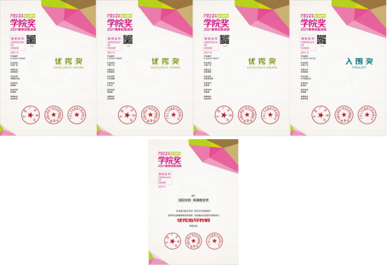 本届春季赛所获奖项仍然有多项都是教师依托所教课程的教学成果,结合理论课程、实践环节,由教师引导同学参与创作,使同学在比赛中积累经验,最终获得优异成绩,从而形成了我校独具特色的培养模式。在课程安排上设置一定比例的课内学时对同学进行创意练习,为广告创意实践打下坚实基础。