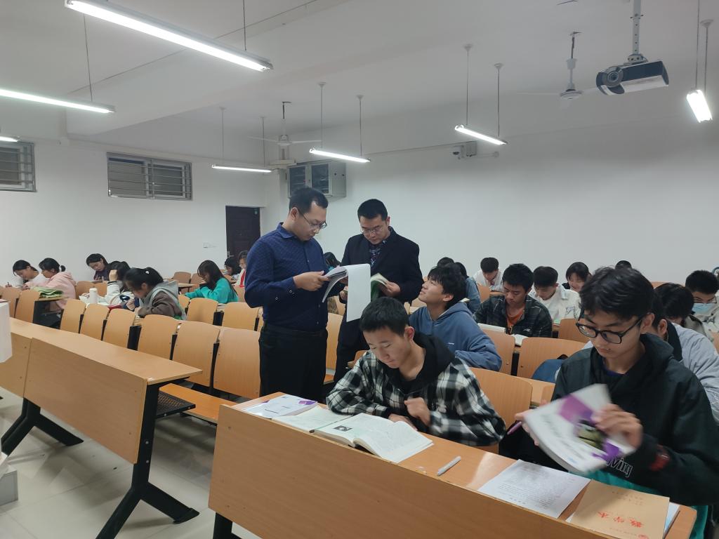 他们深入到各班级,首先了解同学们的出勤情况,检查同学们的晚自习学习内容,询问大家在学习上有没有什么困难和问题,鼓励同学们要充分利用好晚自习时间,筑牢专业基础课,夯实英语、政治、高数等课程,为将来的进一步深造等打好基础。