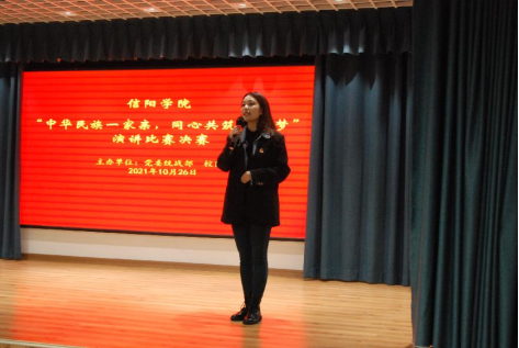 为深入学习习近平总书记关于加强和改进民族工作的重要思想,进一步促进我校师生“铸牢中华民族共同体意识”,由校党委统战部、校团委主办的“中华民族一家亲,同心共筑中国梦”演讲比赛决赛于10月26日下午在综合楼信阳优秀传统文化传承馆举行。党委统战部部长万建章、校团委书记郑山峰,传承馆负责人陈金强出席比赛。宣传部教师何勇,校团委教师徐媛、张翰文,学生会主席团成员任嘉璐担任比赛评委。