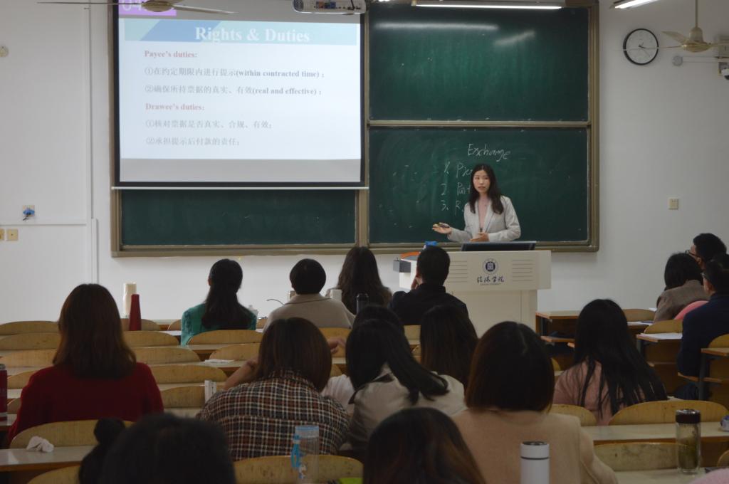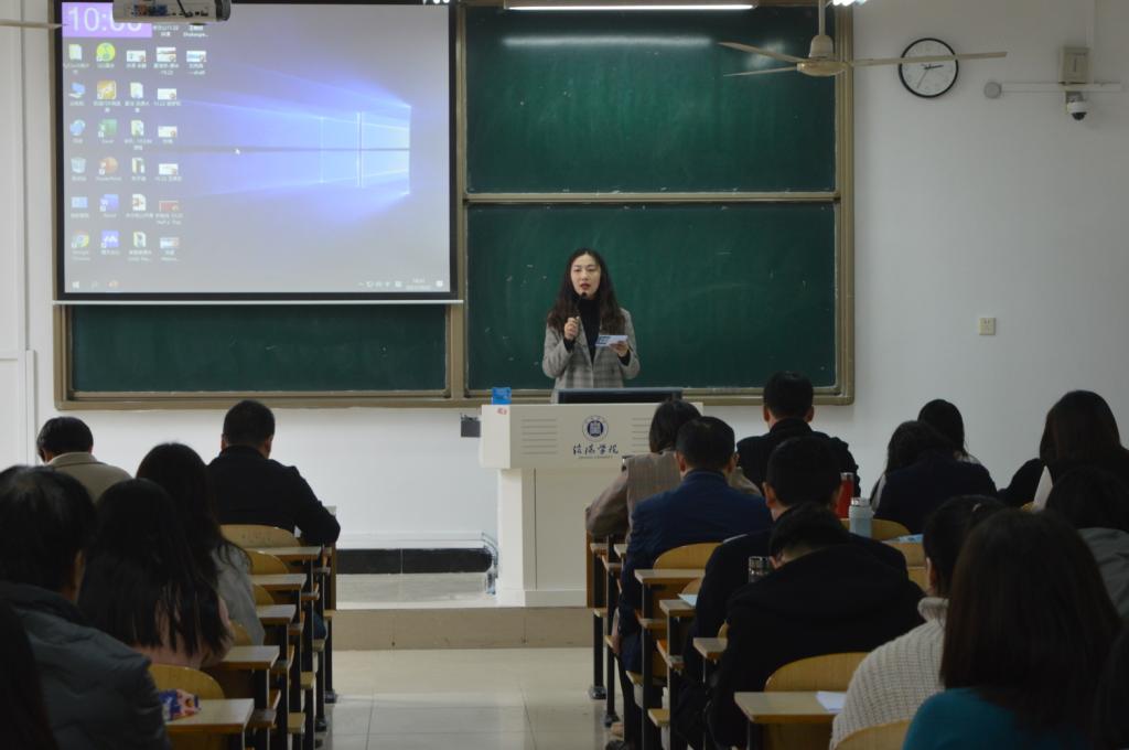 为检验新入职青年教师教学学习成果,10月22日下午,外国语学院在外语楼202教室开展新入职青年教师教学达标验收活动。此次活动以教学技能竞赛的形式开展,特邀请了外国语学院的六位资深教师担任评委。外国语学院院长罗德喜、副院长李静和外国语学院全体教师参加了此次活动。活动由关乐乐老师主持。