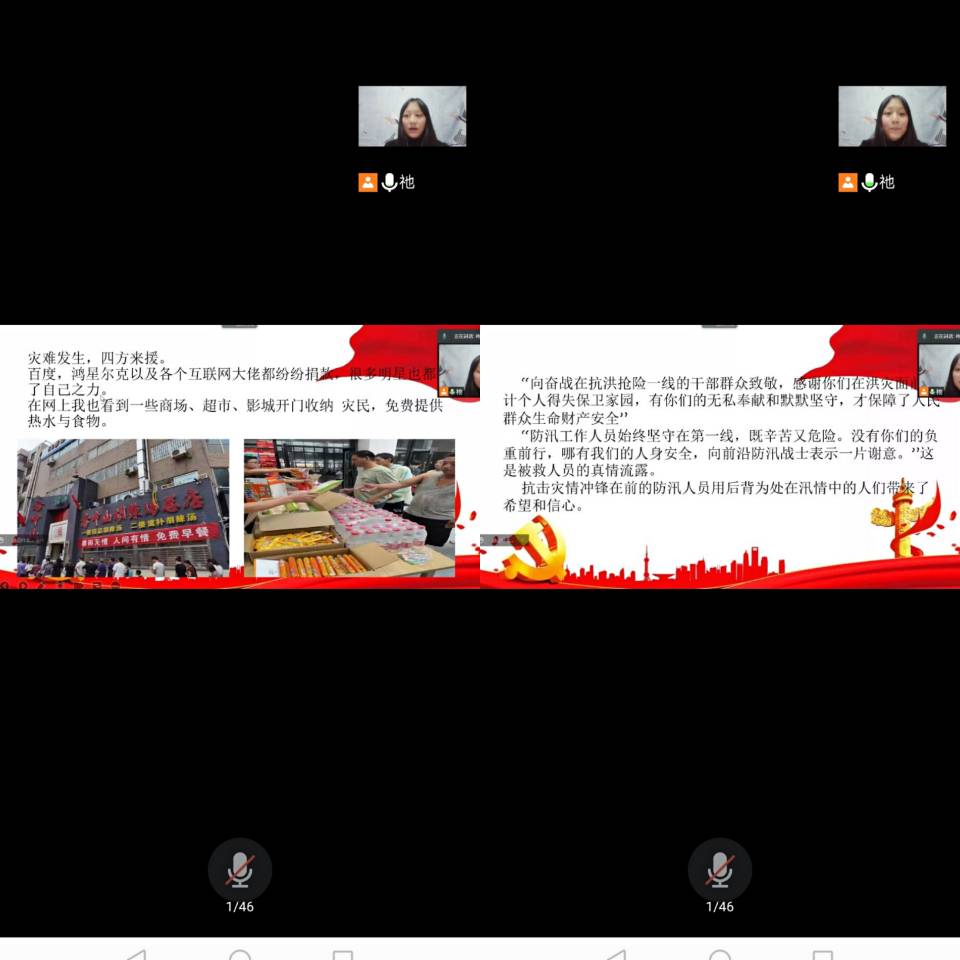 一场灾情,一次考验,一堂大课。此次专题学习活动,增强了对入党积极分子的理想信念教育、爱国主义教育、安全教育、防汛救灾教育,提高了青年学生的责任担当意识。