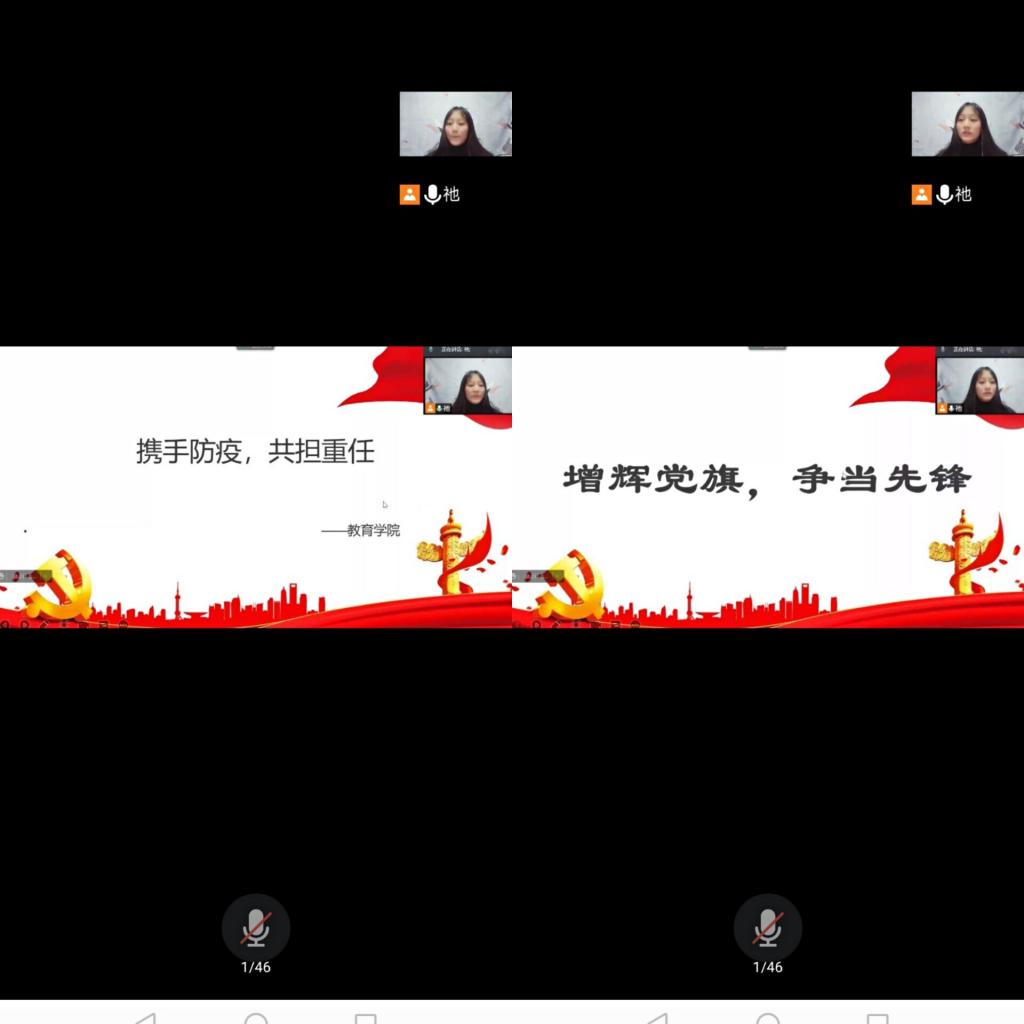 为积极弘扬正能量,凝聚疫情防控的强大合力,同时切实贯彻落实防汛宣传教育工作,提高入党积极分子防灾救灾工作的责任感和使命感。11月20日,教育学院召开了入党积极分子学习会议,以网络课堂的方式对入党积极分子进行以“携手抗疫, 共担重任”和“防汛不防爱”为主题的培训学习。学院134名入党积极分子参加了此次的学习活动,会议学习活动由小组组长吴静、芦元奇组织。