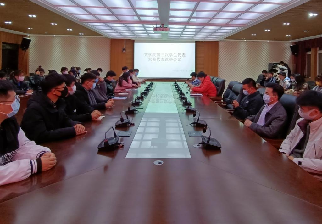 为深入贯学习彻党的十九大精神,深入落实《学联学生会改革方案》《关于推动高校学生会(研究生会)深化改革的若干意见》,增强学生会动力,激励学生积极向上、奋发图强,以服务青年成才为宗旨,深化贯彻社会主义核心价值观,全面落实党的人才培养计划,加强广大青年学生敢于拼搏的精神。我院于11月24日在人文楼208会议室召开了文学院第三次学生代表大会,正式选举出席信阳学院第三次学生代表大会代表,会议由团总支书记何军华主持。