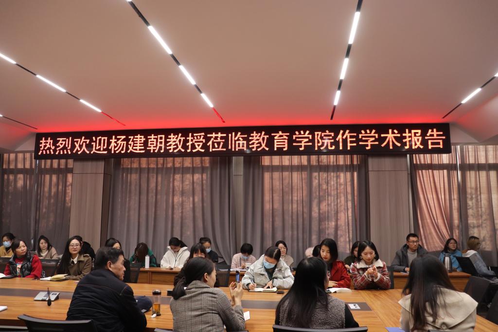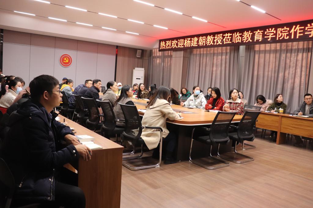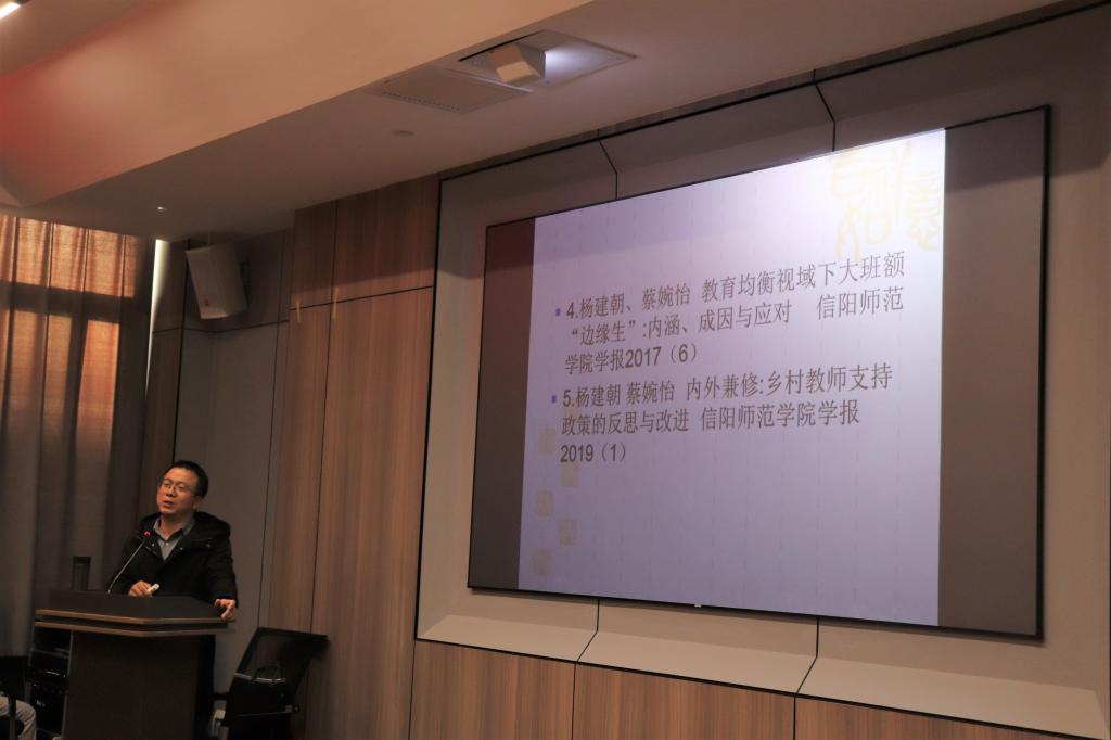 11月25日下午,应教育学院邀请,信阳师范学院杨建朝教授莅临教育学院作了题为《如何写出优秀的学术论文》的学术报告,教育学院全体无授课任务的青年教师和部分学生聆听了此次讲座,教学副院长郑娇娇做主持。
