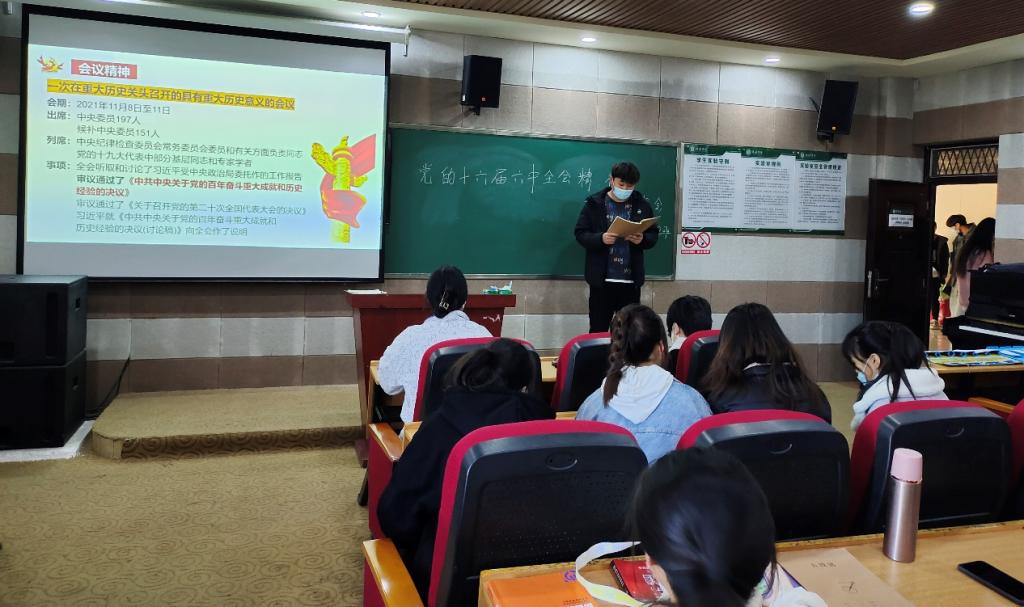 为深入学习贯彻党的十九届六中全会精神,进一步加强学院青年学生团员的思想政治教育,11月26日,音乐学院开展“学习贯彻党的十九届六中全会精神”主题团日活动,学院各年级以班级为单位开展了活动,活动由各班团支部书记主持。