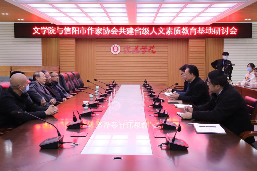 文学院人文素质教育基地是河南省适应新时代教育需要建设的省级重点教育基地,承担着培养新时代需要的高素质人才的任务。信阳市作家协会作为地方文学创作组织机构,文学创作活跃,作家队伍整齐,创作成果丰硕,成为河南省地方文学重要的一支。两个单位的合作将推进基地建设快速发展,成为中原人才培养的优质平台。
