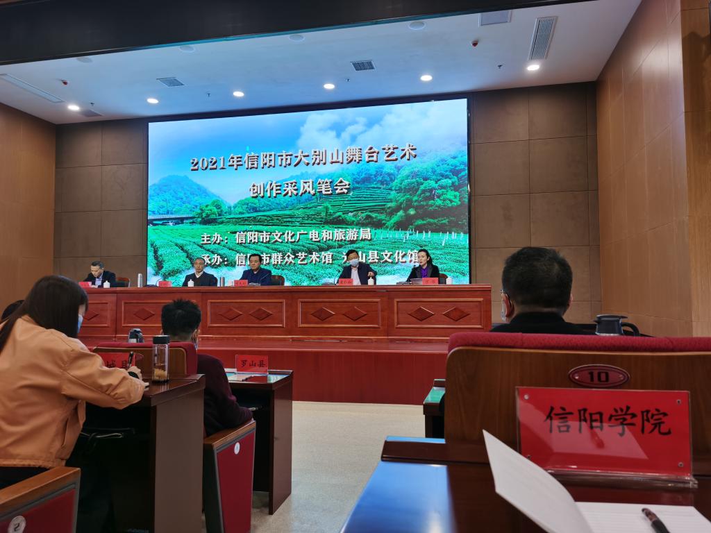 采风笔会期间,召开了2021年大别山舞台艺术创作专题研讨会。会上,各县(区)、各单位主要负责人围绕2021年本县区、本单位艺术创作现状与成果、参与2022年第二届大别山舞台艺术创作大赛的创作规划与参赛打算等先后发言,表示将共同促进全市广大文艺工作者坚持以人民为中心的创作导向,努力推出更多具有信阳特色、讴歌时代风貌的精品力作,为全市舞台艺术事业繁荣发展贡献力量。