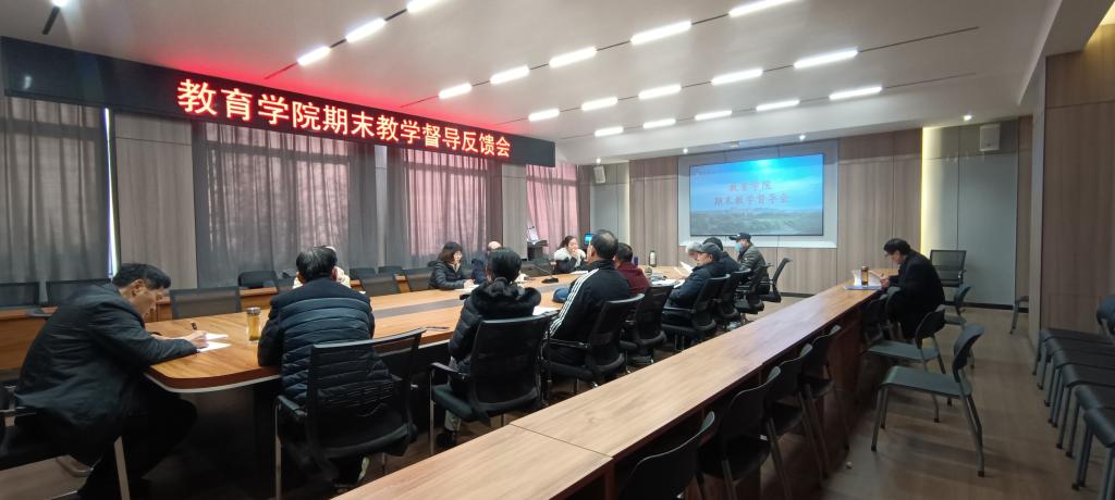 为进一步提升教育教学质量,细化和落实我院课堂评价督导组在教学中以导为主、以督为辅的目标。12月14日下午,教育学院在社科楼109会议室召开了本学期院级教学督导课堂教学评价反馈会。学院名誉院长、教育学院校级、院级督导专家教授、教学口班子成员以及各教研室主任参加了此次会议,会议由教学副院长郑娇娇主持。