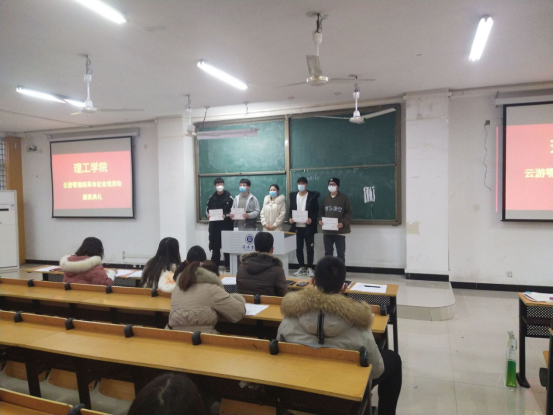 12月14日下午,理工学院在人文楼106教室举行学习大别山精神系列教育活动表彰大会。学院党总支副书记张红梅、学工秘书杨晓杰出席表彰大会,全体辅导员及2021级学生代表参加大会。