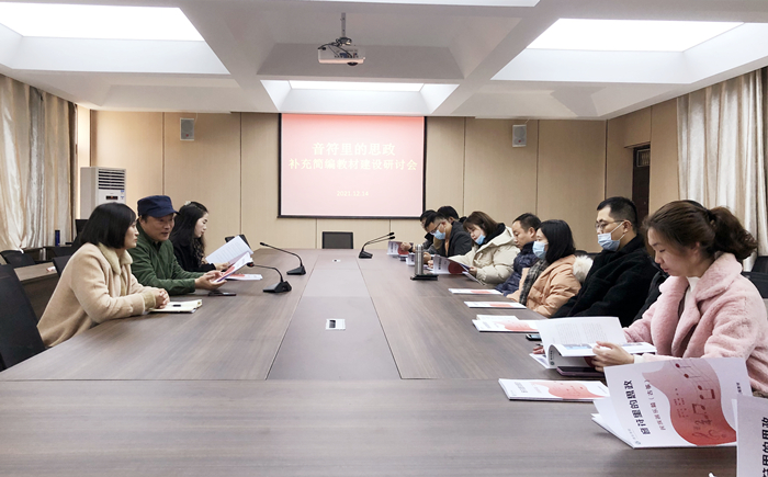 12月14日,音乐学院“音符里的思政”补充简编教材建设研讨会在艺术楼215会议室举行。院长王凯歌、党总支副书记赵佳、教材主要编写人以及教材建设有关人员参加了座谈会。教学副院长杨辉主持了研讨会。