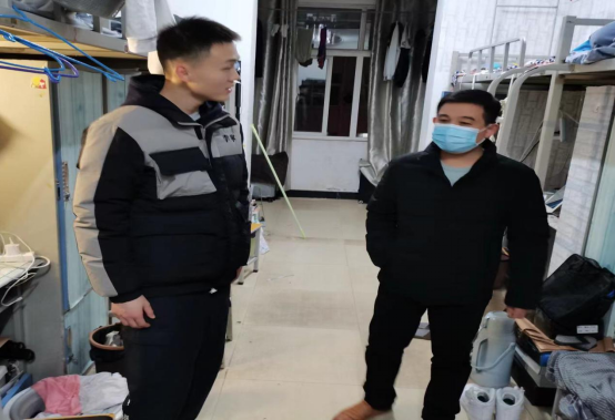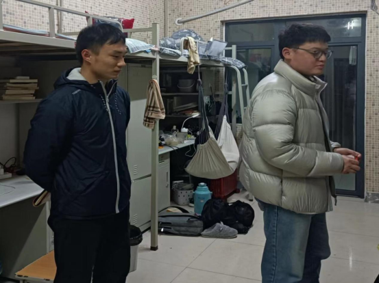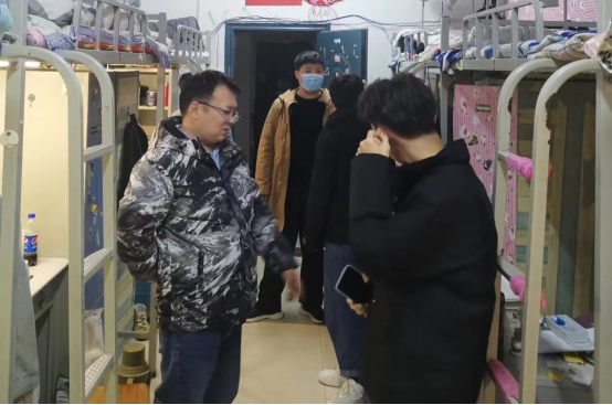 在走访的过程中,老师和学生们进行了亲切地交谈,仔细地询问了学生们的日常生活和学习情况。在交流过程中,老师们语重心长地提醒同学们要注意寝室防火,注意防范网络电信诈骗,保证用电安全,养成良好的生活习惯,营造温馨、舒适、安全的学习和生活环境;在校期间要高度重视疫情防控工作,按时打卡,严格履行外出请假手续,做好个人防护。同时,向同学们强调了诚信应考的重要性,希望大家认真复习,取得优异成绩;并叮嘱大家假期离校时注意安全,度过一个愉快而充实有意义的寒假。