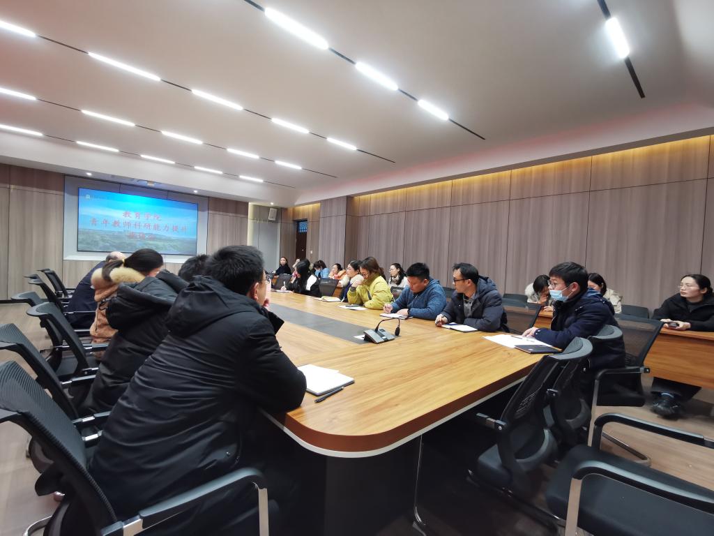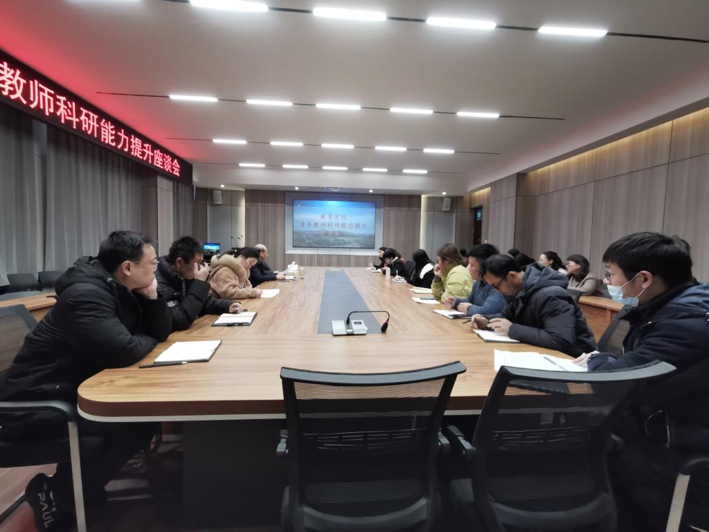 12月17日下午4点半,教育学院在社科楼109会议室召开了青年教师科研能力提升座谈会,名誉院长、教学副院长郑娇娇和班子成员以及全体无授课任务的讲师职称的青年教师参加了座谈会,名誉院长做主持。
