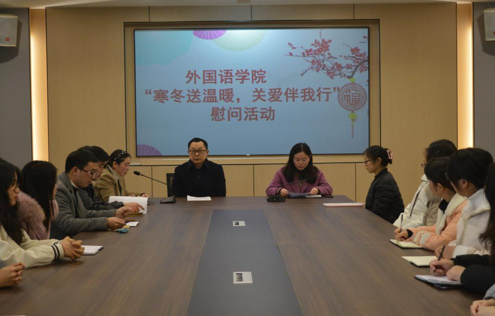 近日,外国语学院在外语楼110举行“寒冬送温暖,关爱伴我行”慰问活动。外国语学院院长罗德喜,党总支副书记程娇炎、学工干事何珊珊、辅导员老师及受助的学生参加了此次活动。会议由何珊珊主持。