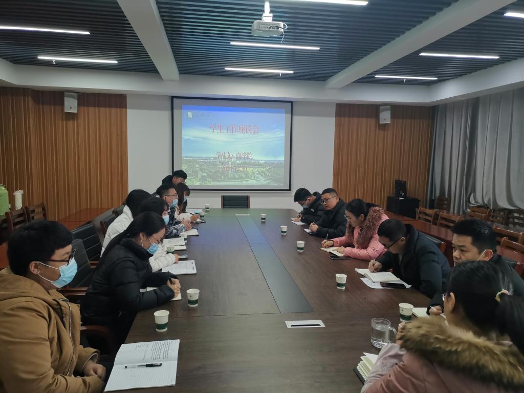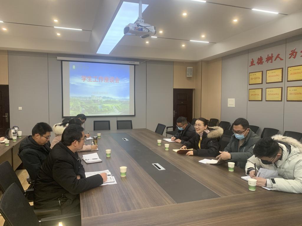 座谈会上,各学院还针对学生管理系统的完善、辅导员队伍建设、大学生征兵入伍、学生的心理健康教育、学生资助育人工作和学生公寓管理等方面进行深入探讨,提出了一些建设性的意见。同时希望今后多开展类似的座谈活动,为辅导员提供一个交流互动的平台,增加学生工作队伍面对面沟通的机会,共同推动学生工作再上新台阶。