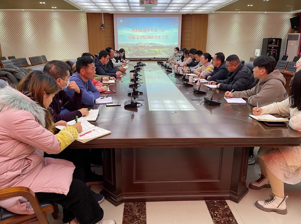 为切实提升我校学生工作水平和服务质量,学生处处长余婷婷一行于12月27日至30日深入到11个二级学院走访调研学生工作。本次走访调研主要是针对疫情防控常态下学生思政教育、学生日常管理、学风建设等工作进行座谈交流,并听取各学院的意见和建议。各学院党总支书记、学工负责人、辅导员参加了活动。