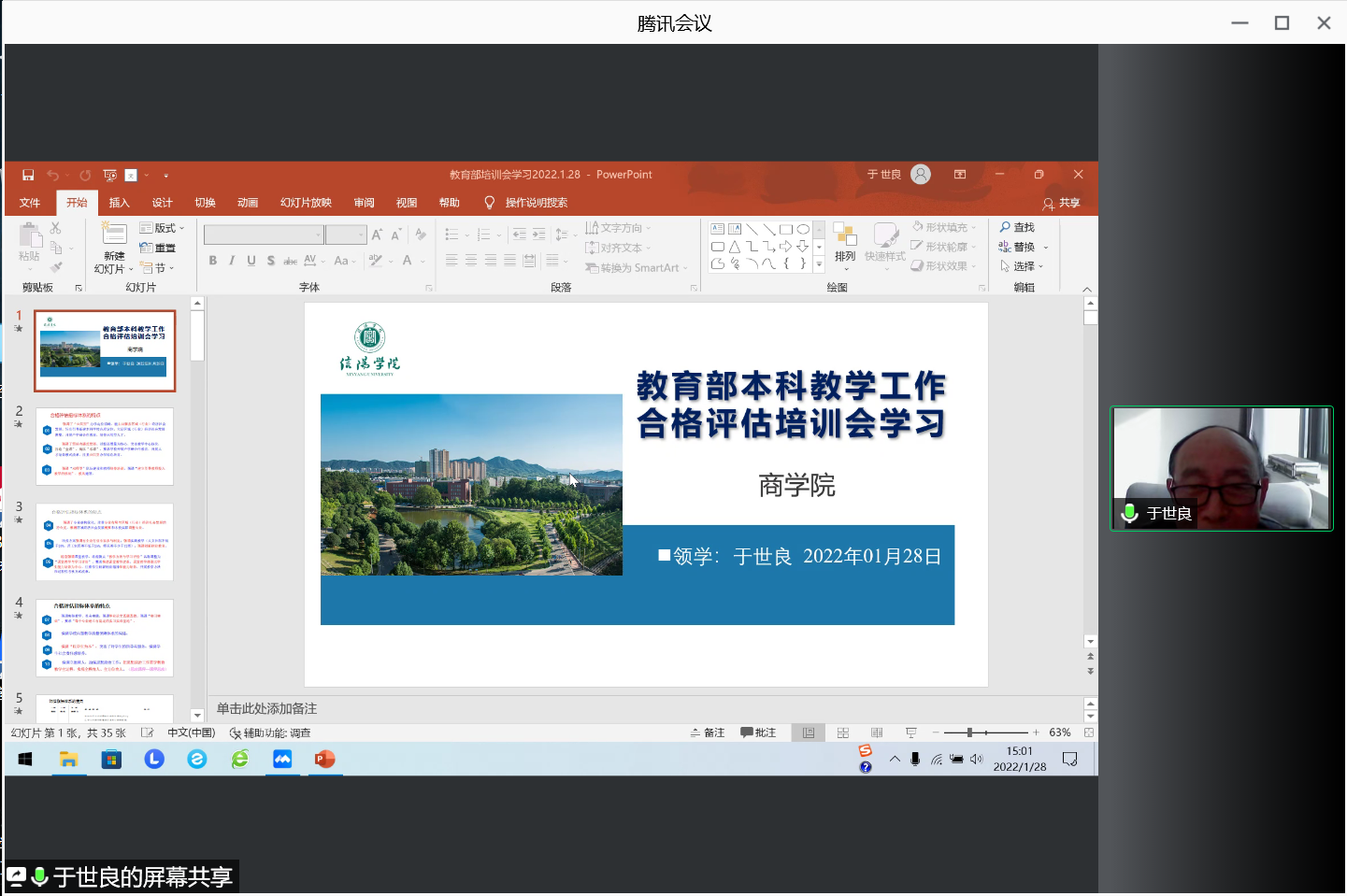 为更好地贯彻落实学校本科教学合格评估工作专题部署会会议精神,商学院领导班子组织带领老师们首先做好自学培训,并于1月28日下午3点至6点线上组织召开评建工作集中学习会和研讨会,副校长王强应邀出席研讨会,商学院院长于世良等领导班子、教研室主任等参加会议。会议由胡秀云主持。