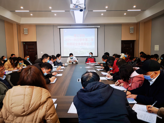 接着,李晓严对新学期的工作进行了细致的安排。首先对师生在寒假期间的工作进行检查,确保在开学初教学材料的完成,教师要督促学生要带好笔记本,避免隐性逃课。并核查了2022届毕业论文进展情况。其次,李院长详细布署了前两周的主要工作:在第一周,为迎接学期期初检查,学院老师要自查教学材料、教研室活动计划、青年教师的业务培训、教学运行等情况。同时,李院长宣布了我院即将在第二周开展教学技能的选拔以及王倩倩老师的实验公开课等活动。李院长还强调教师要做好一对一考研工作的辅导、听课看课等工作,并且本学期将继续开展思政经验交流会,促进课程思政建设。