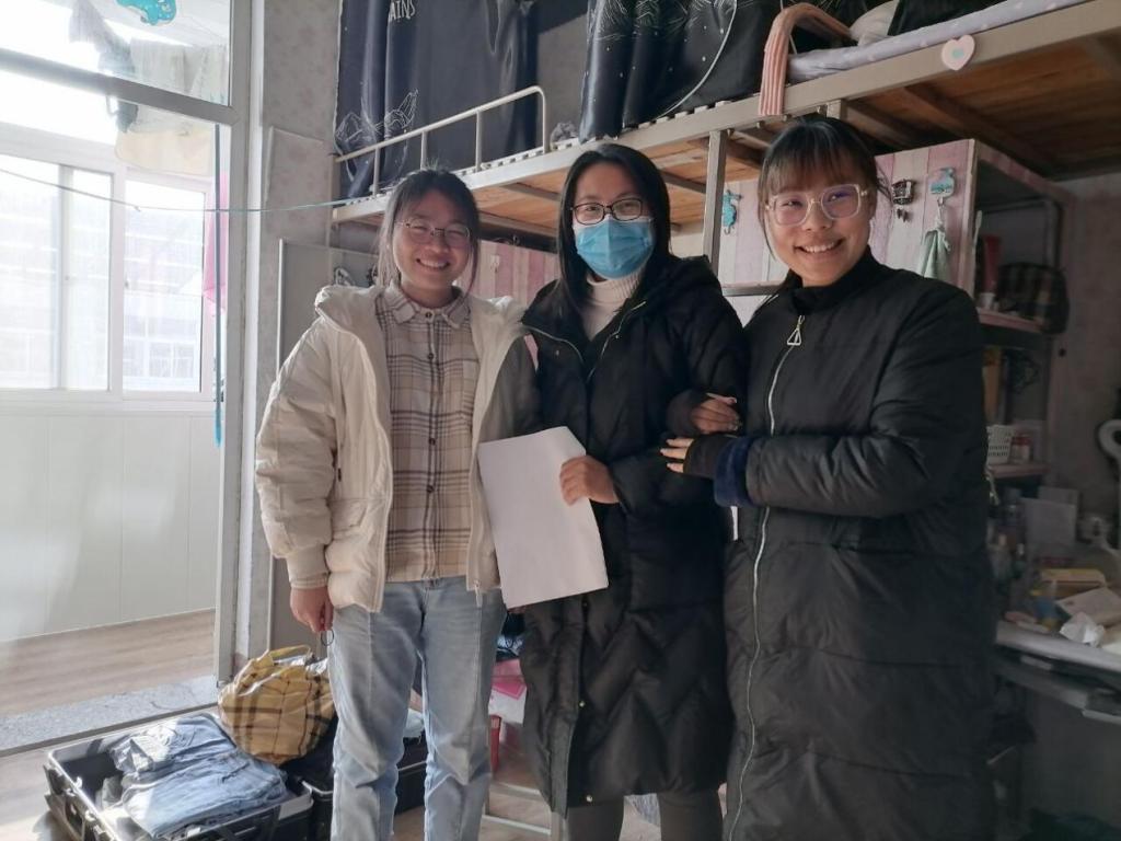 走访过程中,程娇炎对各寝室的安全隐患进行了排查,与学生亲切交谈,了解学生返校情况,询问学生学习生活方面有无困难,对新学期的课堂学习进行要求,再次强调本科合格评估对我院师生未来发展的重要性,督促大家积极投身评估建设中以积极饱满的精神面貌迎接专家进校。何珊珊针对课堂记录提出要求,督促学生养成自觉学习,记课堂笔记的良好习惯,共同营造良好的学风、积极向上的学习氛围。