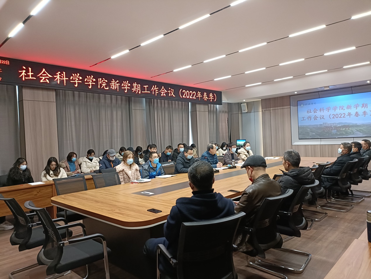 2月22日下午,社会科学学院在社科楼109会议室召开新2022年春季新学期工作会议。学院领导班子和全体教师参加会议。会议由名誉院长主持。
