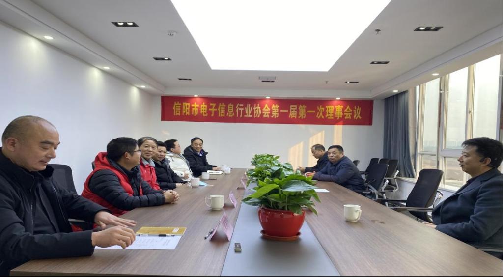 2月19日下午,信阳市电子信息行业协会第一届第一次理事会议在谷麦光电科技股份有限公司召开,谷麦光电科技股份有限公司董事长张诺寒、河南天扬光电科技有限公司总经理许力等人出席会议,理工学院院长肖生发受邀参会。