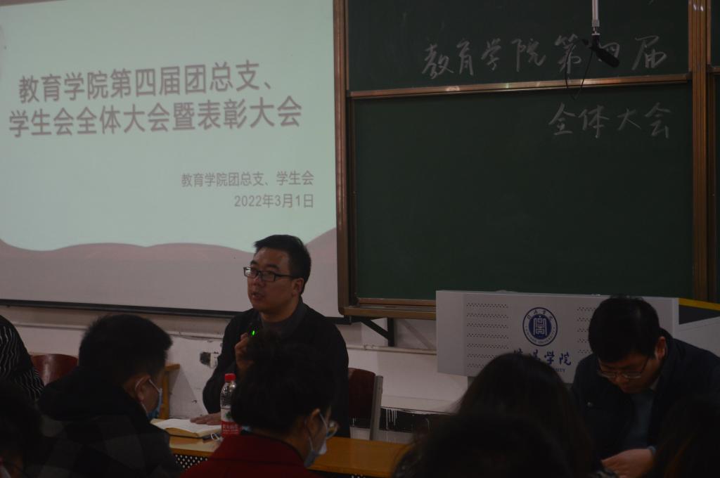 转眼间新学期已经到来,教育学院第四届团总支、学生会全体大会暨表彰大会于3月1日中午在社科楼112教室召开。参与本次大会的有党总支书记张甲楠、学工干事郝昊、团总支书记林子瑞、各位辅导员以及团总支、学生会全体成员。