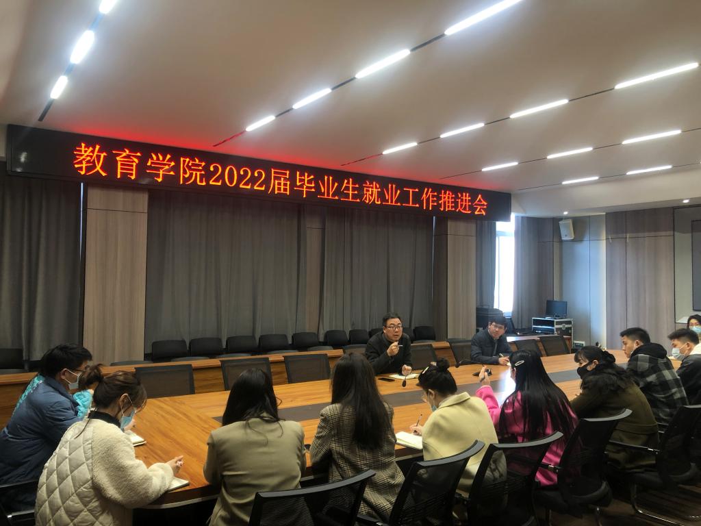 为应对疫情影响,促进毕业生更高质量充分就业,教育学院于3月3日召开了促进2022届毕业生就业专题会议,分析就业形势,部署下一阶段就业工作。党总支书记张甲楠、学工干事郝昊、全体辅导员参加了会议。