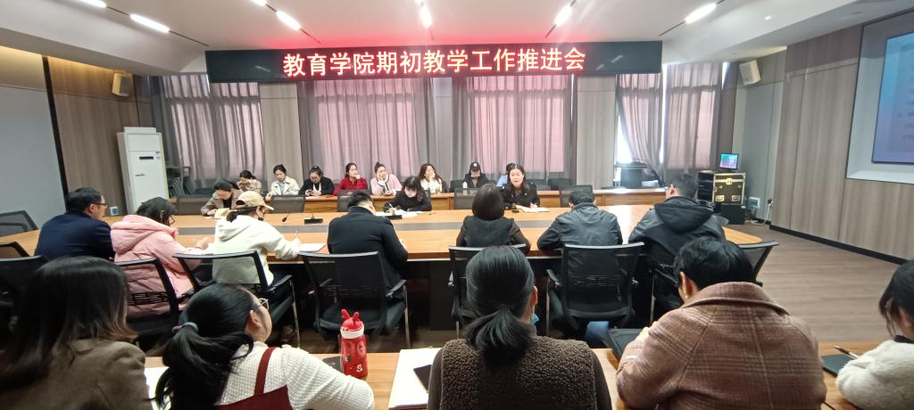 3月4日下午,教育学院在社科楼109会议室组织召开了期初教学工作推进会。教学副院长郑娇娇和教学办各成员、各教研室主任以及教师代表等人参加了会议,会议由郑娇娇主持。