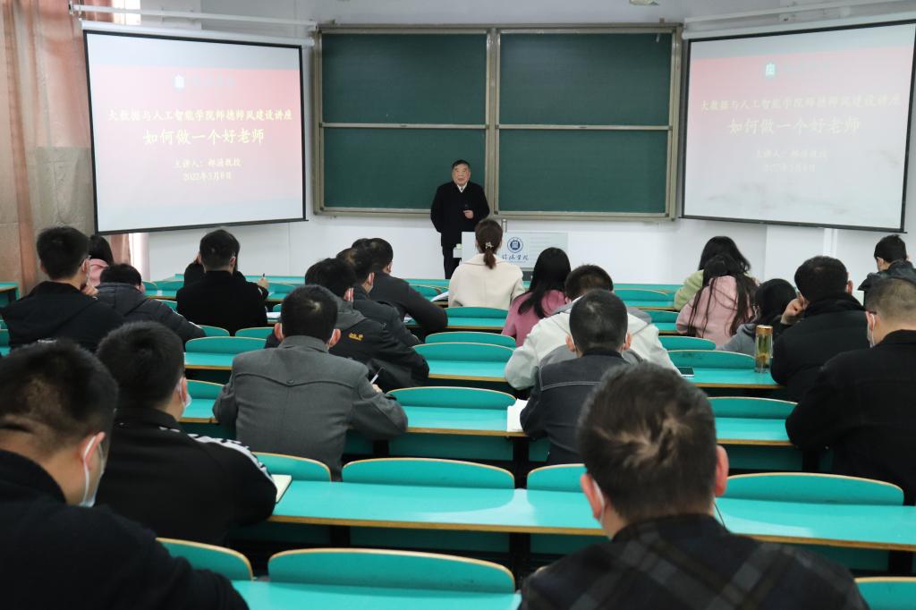 3月8日下午,大数据与人工智能学院邀请郝涌教授在数计楼106为我院教师作题为“如何做一个好老师”的师德师风建设讲座。学校督导钱显毅、侯秀红,大数据与人工智能学院全体教师聆听了讲座。