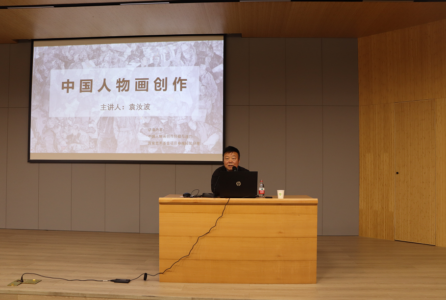 3月10日下午,美术与设计学院特聘教授、美术研究所所长、著名画家袁汝波在图书馆101学术报告厅作了题为《中国人物画创作技巧及国家艺术基金申报经验分享》的学术报告。副校长王志华、学院张瑞瑞院长、党总支副书记袁军、教学副院长王伟及150余名师生参加了报告。王伟主持了报告会。