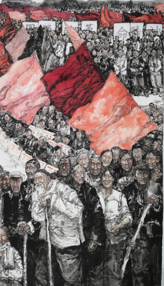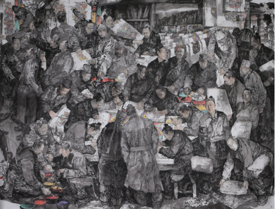 朱仙镇木版年画(局部) 报告会上,袁教授从自己2016年创作的中国画《红旗渠》和2022年创作的中国画《朱仙镇木板年画》先后两次荣获国家艺术基金资助项目为切入口,结合自身作品创作历程,详实的阐述了创作题材的选择、历史背景调查、素材的收集、初稿的拟定、绘制完整画作的创作过程,向青年教师分享申报国家艺术基金的经验。他指出,国家艺术基金是国内艺术界最高级别、最权威的资助项目,申报选题一定要立意好,有态度,有特点,创作准备要充分。