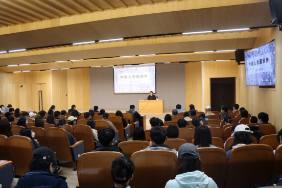 袁教授带领大家以个人创作作品、业内优秀作品为案例,从素材选择、造型能力、艺术与技术的关系、模块化创作、艺术创新的途径等方面诠释了中国人物画的创作技巧。他强调了素材对于绘画创作的重要性,指出好的素材,作品就成功了一半;好的创作理念一定要能打动人的;艺术与技术紧密相连,艺术需要呈现一定立场、表达一种态度,具有一定的独特性,要把创作者个人主观理念深入融合到客观的创作对象中去,要用过硬的技术去完善艺术。