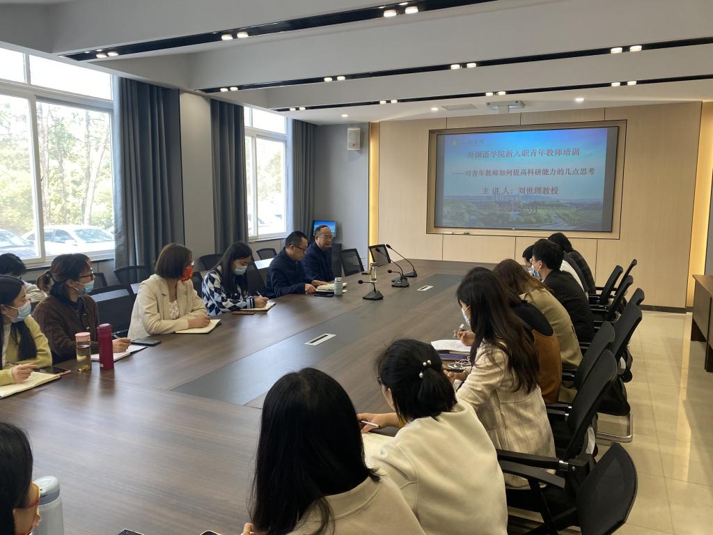 为提升青年教师科研能力,助推青年教师取得科研成果,实现教学与科研的同步发展,3月15日下午,外国语学院在外语楼110会议室召开新入职青年教师科研能力提升培训会。外国语学院院长罗德喜、党总支副书记程娇炎、教学副院长李静、行政干事梁书荣、刘世理教授及新入职青年教师参加了本次会议。会议由院长罗德喜主持。