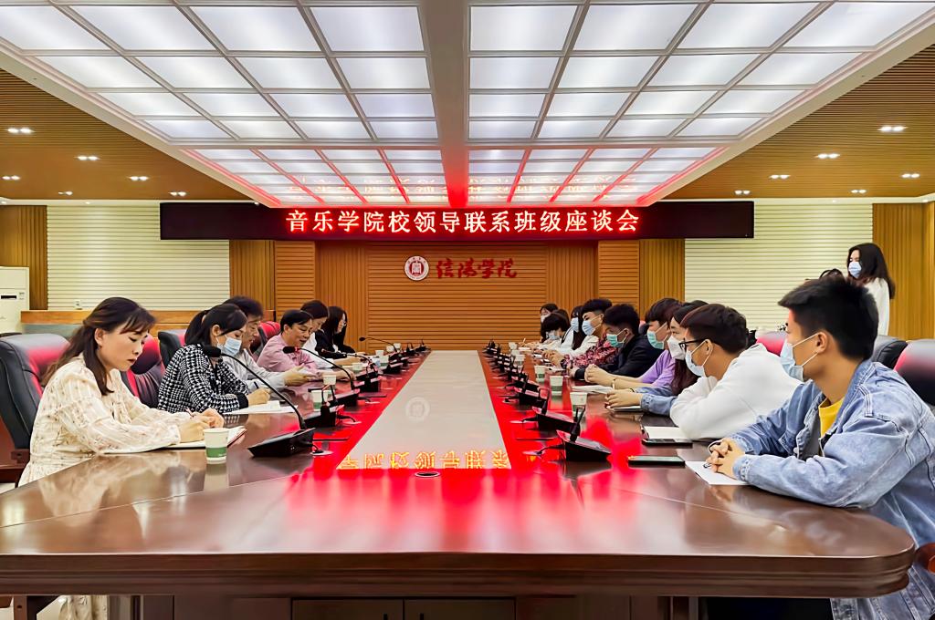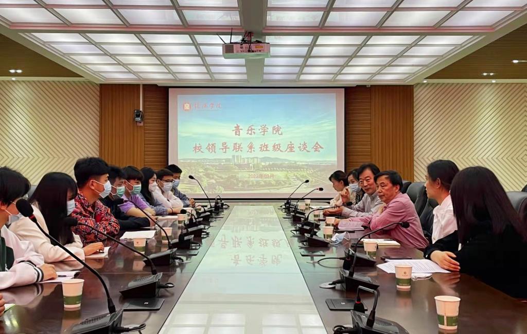 3月16日下午,音乐学院在人文楼208会议室开展了校领导联系班级座谈会。校党委专职副书记施昌海,音乐学院院长王凯歌,宣传部部长李肖利,音乐学院党总支副书记赵佳、学工秘书李平、辅导员樊丽及2020级音乐学本科2班学生代表参加了座谈。座谈会由赵佳主持。