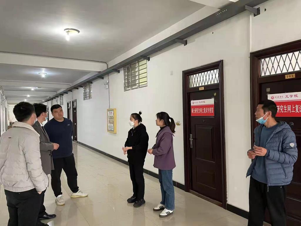 党总支书记李赟亲自指挥布置,他强调今年考研形势激烈,线上复试是考研学子为硕士研究生做的最后重要准备,受疫情影响,今年复试均采用线上进行,文学院设置硕士研究生网上复试专用室就是为了让考研学生为线上复试做更好的、更充足的准备,以求满意的结果。