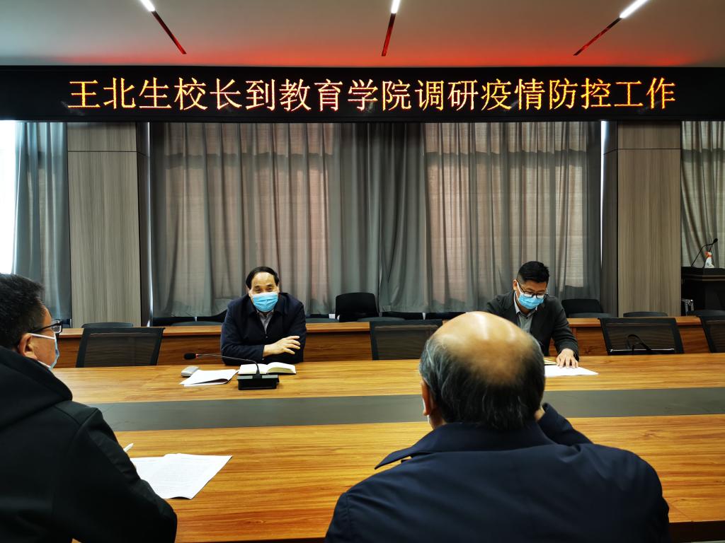 3月23日下午,校长王北生深入教育学院调研指导疫情防控工作,该院全体班子成员和辅导员老师参加了座谈。