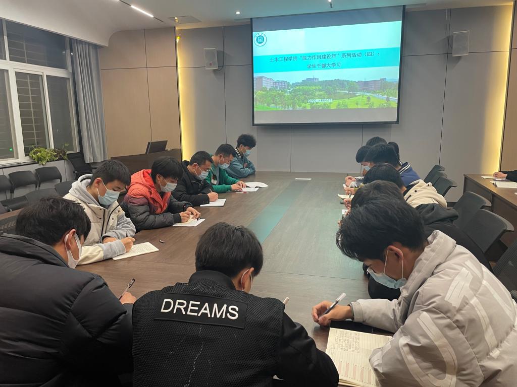 3月25日下午,土木工程学院在理工楼112会议室召开了“能力作风建设年”学生干部大学习活动。学院学工干事徐超,团总支书记徐飞以及全体学生干部参加了此次会议,会议由徐飞主持。