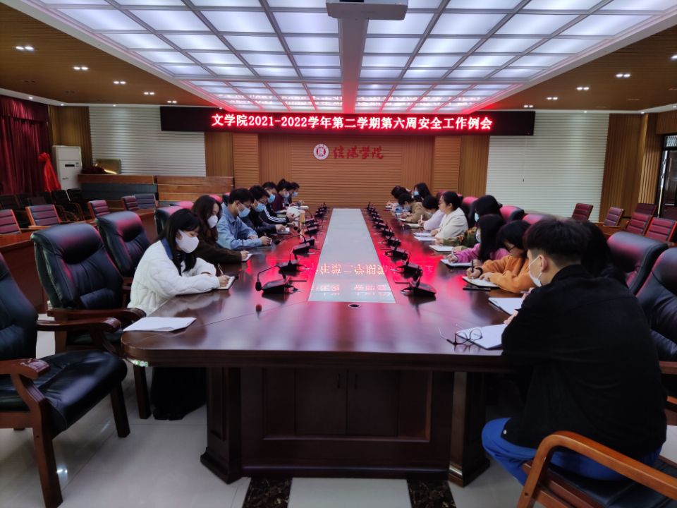 3月28日上午,我院在人文楼208会议室召开本学期第六周安全工作例会,出席本次会议的有文学院党总支书记李赟、学工秘书徐远东、团总支书记何军华及全体辅导员。本次会议由徐远东主持。