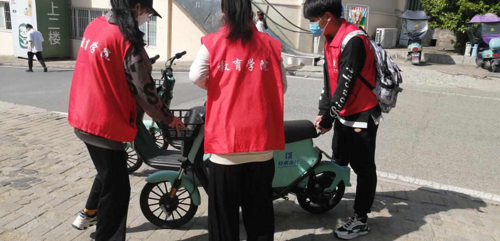 随着我们学校基础设施的不断完善,共享单车也进入了同学们的校园生活,单车在方便大家出行的同时也逐渐暴露出一些问题,如随意停放,占用过道等问题。为了加强同学们文明摆放共享单车的意识,教育学院志愿服务中心成员于3月29日下午三点到四点开展了“摆放共享单车,共享文明校园”的志愿活动。