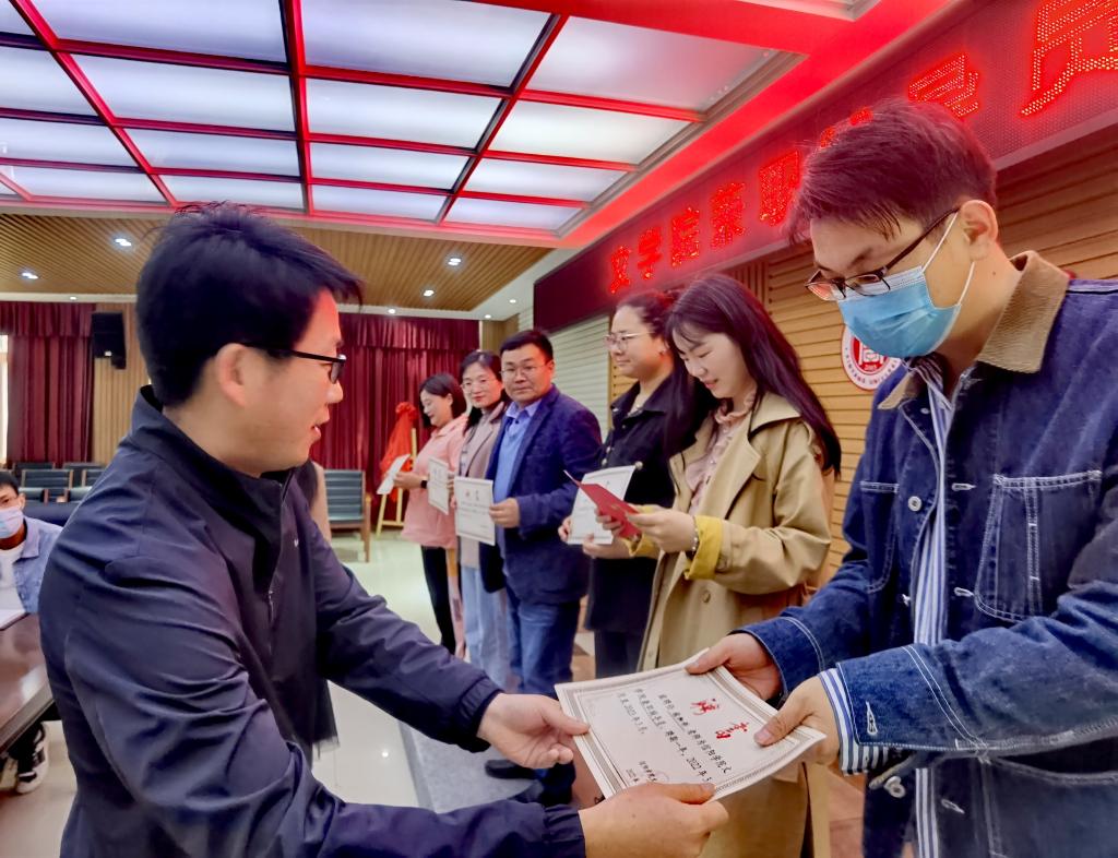 接着,文学院党总支书记李赟逐一为兼职辅导员颁发聘书,感谢各兼职辅导员的加入并对兼职辅导员的工作职责提出明确要求。最后,专兼职辅导员就带班问题进行交流讨论,会议至此圆满结束。