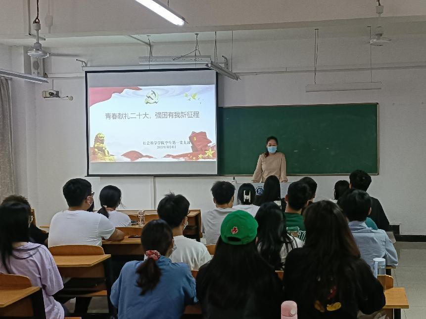 党的二十大是我们党进入全面建设社会主义现代化国家、向第二个百年奋斗目标进军新征程的重要时刻召开的一次十分重要的代表大会,是党和国家政治生活中的一件大事。为了迎接党的二十大的胜利召开,5月4日,社会科学学院学生第一、第二党支部全体党员在社科楼515教室举行了“青春献礼二十大,强国有我新征程”的专题学习会。