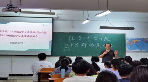 2022届研究生录取工作结束,社会科学学院多措并举助力学生考研取得佳绩。我院2022届毕业生343人,共有214人报考研究生,报考率为62.39%,相较2021年增长了1.47个百分点;共有56名同学过国家线,平均过线人数占报考人数的26.17%;最终录取38人,相较2021年提高了1.93个百分点。其中,张延波、张恒飞、曹江涛、于向阳、王爱霞等9名同学分别被郑州大学、河南大学、西北大学、新疆大学、宁波大学等“双一流”建设高校录取。涌现出3名学生同时考取河南大学法学院,18#523宿舍四名同学同时考取研究生的优异成绩。回顾2022届学生考研工作,我院主要采取了以下举措: