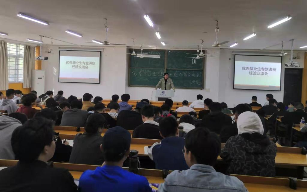 木欣欣以向荣,泉涓涓而始流。为促进毕业生就业创业激情,使毕业生更加明确自己的就业目标,帮助毕业生更好的规划求职就业,获取更多就业信息与求职经验,2022年5月2日上午8点,由文学院举办的2022届优秀毕业生经验交流会在人文楼106教室顺利举行。参加本次交流会的有文学院辅导员以及应往届毕业班的优秀代表。本次交流会吸引了大量学生,场内座无虚席,气氛活跃。
