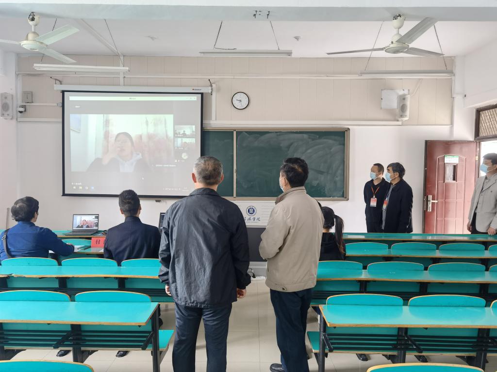 5月1日,在数计楼301、302、303、304、308举行了面试环节。我院邀请来自信阳市九中、信阳市浉河中学等的校外专家李道祥、李芳芳、罗婷婷、冯娜娜、郝玲老师及校内专家等人担任面试评委。测试期间,信阳学院副校长王强、教务处处长陈文涛等领导到现场巡视督察。院长俞迎达、副院长张聪详细汇报了疫情防控、考试组织、保密管理、网络保障、考场秩序等方面情况,王强对考试工作严谨细致的组织实施、整洁有序的考场环境、自觉守纪的考生风貌等均给予了充分肯定。