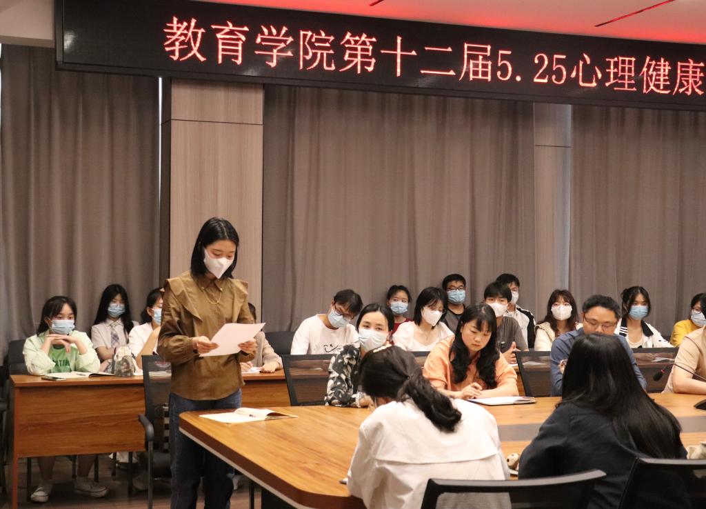 教育学院二级心理辅导站站长付珺宣读了《教育学院关于第十二届5·25心理健康月工作方案》,并对各项活动进行了详细解读。