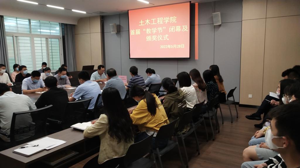 5月28日下午,土木工程学院在理工楼112会议室隆重举行首届“教学节”闭幕及颁奖仪式,学院领导班子、全体教工及学生代表参加了仪式,教学副院长杨子泉主持了仪式。
