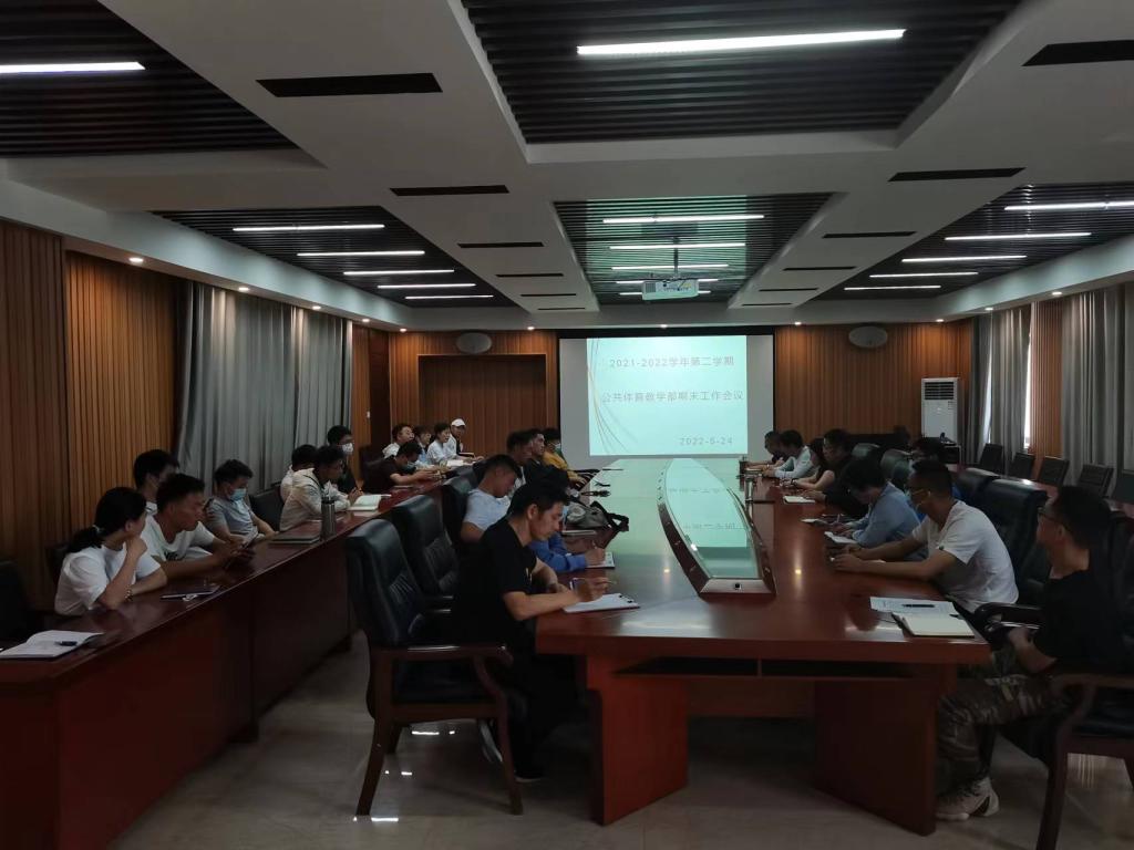 5月24日下午,公共体育教学部2021—2022学年第二学期期末工作会议在综合楼1410召开。公共体育教学部主任、教学干事、行政干事和全体教师参加会议,会议由公共体育教学部主任周曙光主持召开。