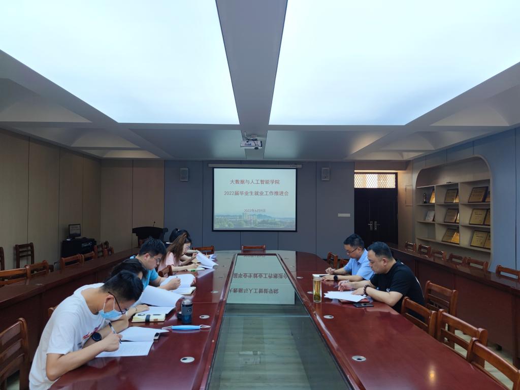 为进一步推进2022届毕业生就业工作,保证毕业生离校后就业工作的顺利开展,6月9日下午,大数据与人工智能学院在数计楼407会议室召开2022届毕业生就业工作推进会,学院党总支副书记毛凤翔、学工干事鄢杰和全体辅导员参加会议,会议由鄢杰主持。