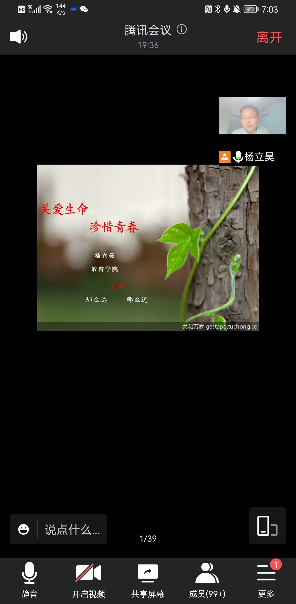 为进一步普及心理健康教育知识,6月13日,教育学院以腾讯会议的形式举办了以“关爱生命、珍惜青春”为主题的心理健康讲座。本次讲座邀请教育学院心理顾问杨立昊老师主讲,二级心理辅导站站长付珺、心理健康部全体成员和部分学生代表聆听了此次讲座。