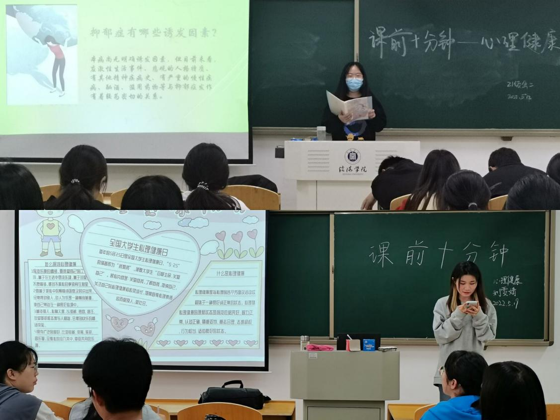 同时5月份,同学们还利用课前十分钟的时间进行心理知识小科普,辅导员们也在网络平台给同学们分享心理健康知识,使同学们科学地对待社会、人生与生活中的各种矛盾,树立正确的心理健康观,正确把握心灵的准绳,懂得自我调节和适应,成为心理健康、生活快乐的大学生。