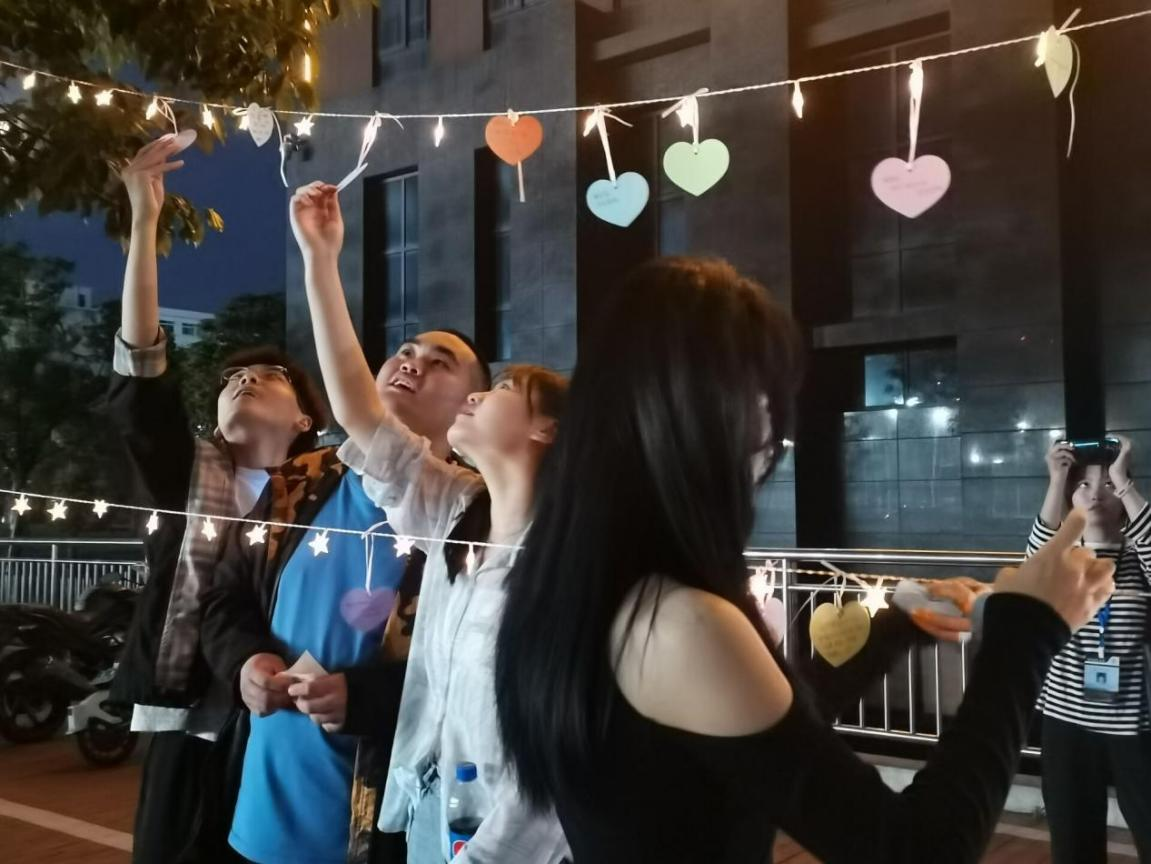 5月15日,在综合楼后举办了“解封后你想做什么”和“心语心愿”特色活动,活动中,每位同学都积极参与,在许愿纸上写下自己的心愿与祝福,并系在绳上,随着风的吹动,同学们的许愿纸也跟着飘扬,愿望也仿佛插起了翅膀,每个人都在期待着疫情后丰富多彩的生活。本次活动不仅为同学们提供了释放压力的机会,也使同学直面自己内心深处,正视自己内心的不良情绪,缓解了疫情下大家的焦虑和不安。